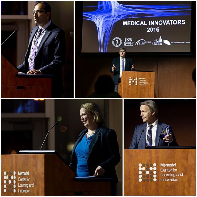 Medical Innovators is a program of the Sangamon County Medical Society in partnership with Springfield Clinic, SIU School of Medicine and the Springfield Chamber of Commerce recognizing the scientists, clinicians, and other medical providers working within the Mid-Illinois Medical District on significant medical treatments, clinical trials and/or medical research.
